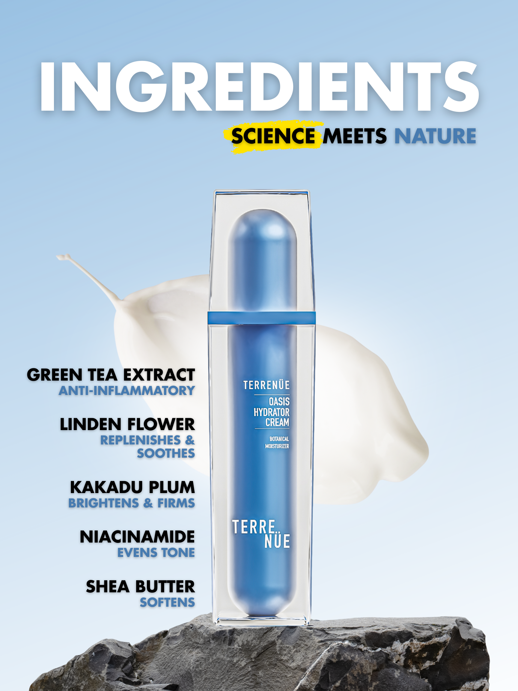 Experience the refreshing hydration of our Oasis Hydrator Cream, A lightweight moisturizer packed with vitamins and antioxidants. Apply onto clean skin, after serum.